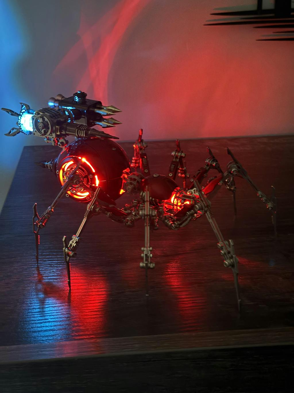 .Striking Light and Shadow Ambiance: Combined with lighting, the transparent parts cast complex light and shadow patterns in the dark. Mechanical limbs throw dramatic silhouettes against glowing inner sections, creating a punk atmosphere that’s more artistic and visually impactful than opaque models—perfect for sci-fi display scenes.