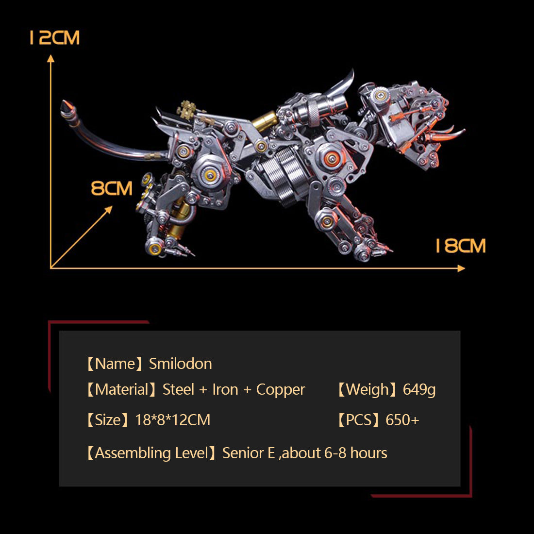 .Wonderful DIY experiencing : 650PCS+ and assembling time is about 6-8 hours. Mechanical Smilodon is a good exercise for hands and spatial awareness because it is made up of many different parts. While assembling, you are also exploring different types of life in the mechanical world and the civilization and information before the mechanical world.