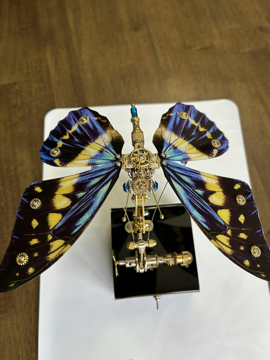 .Sleek Acrylic Base: The butterfly rests on a sleek black acrylic base, which not only enhances its beauty but also provides excellent stability. Watch as the wings flap gracefully, creating an elegant and harmonious display.