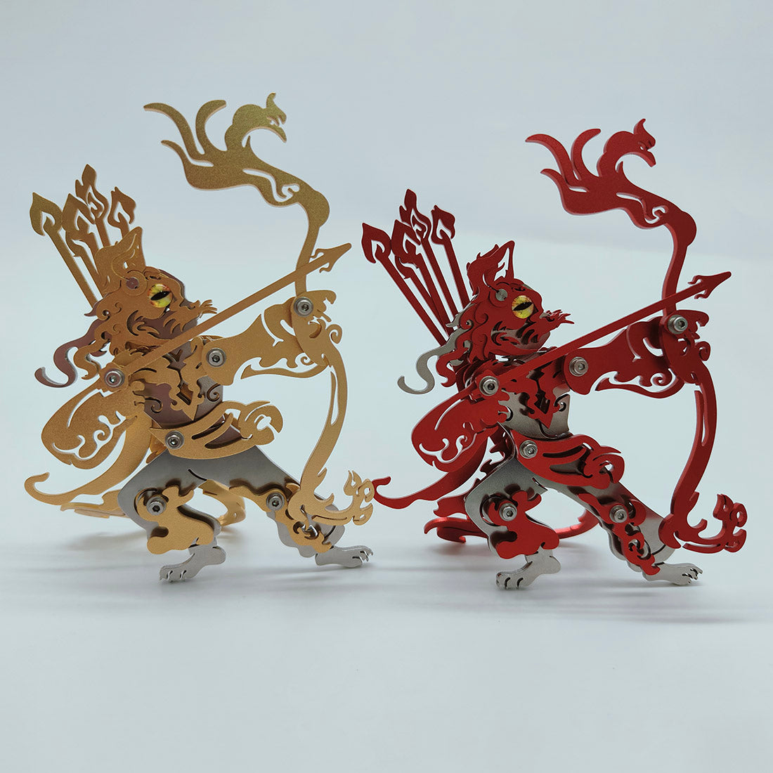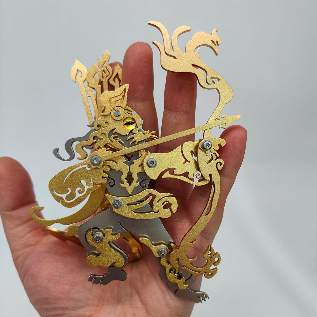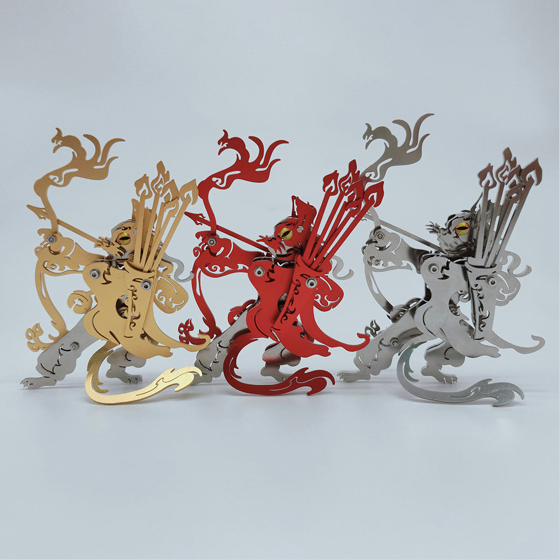 Cat Archer Beast Fight with Monkey King Wukong Assembly Model 3d Metal Puzzle 66+PCS