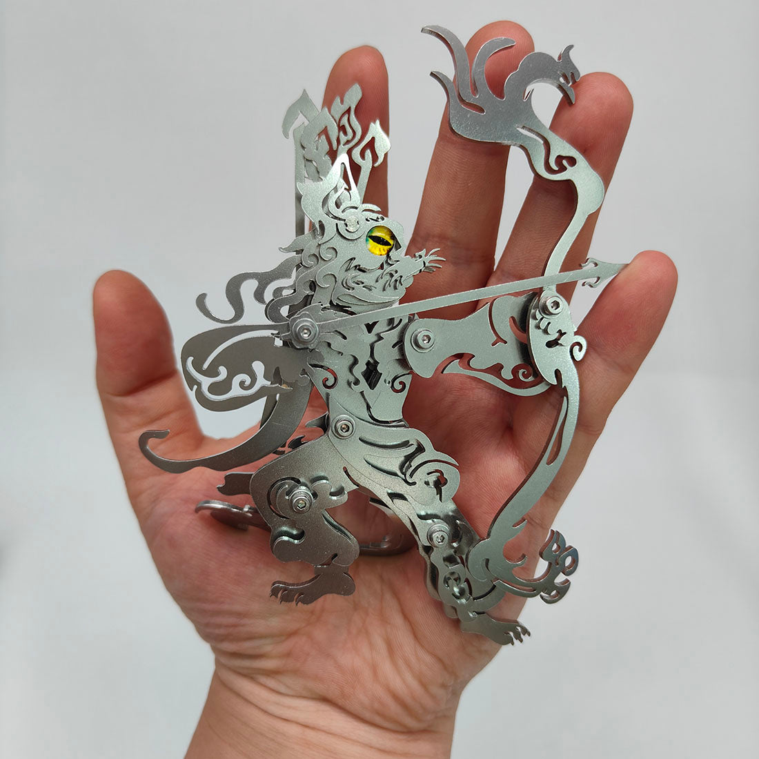 Sitting Ginger Cat Beast Fight with Monkey King Wukong with a Samurai Sword 3D Metal Model Kits