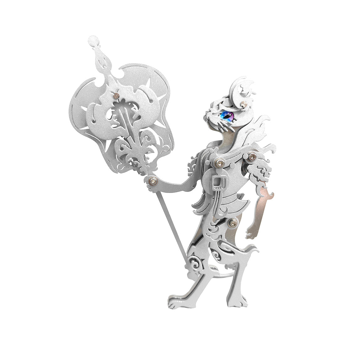 Royal Military Cat Beast Fight with Monkey King Wukong with Bansho Fan 3D Metal Model Kits