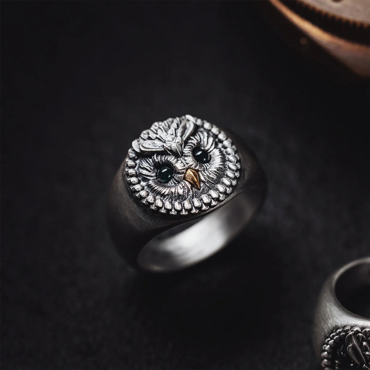 .Exquisite Craftsmanship: Featuring chrysoprase gemstone eyes and detailed multi-layered feathers, this owl ring is meticulously designed to capture the beauty of the majestic bird. Every angle is visually stunning.