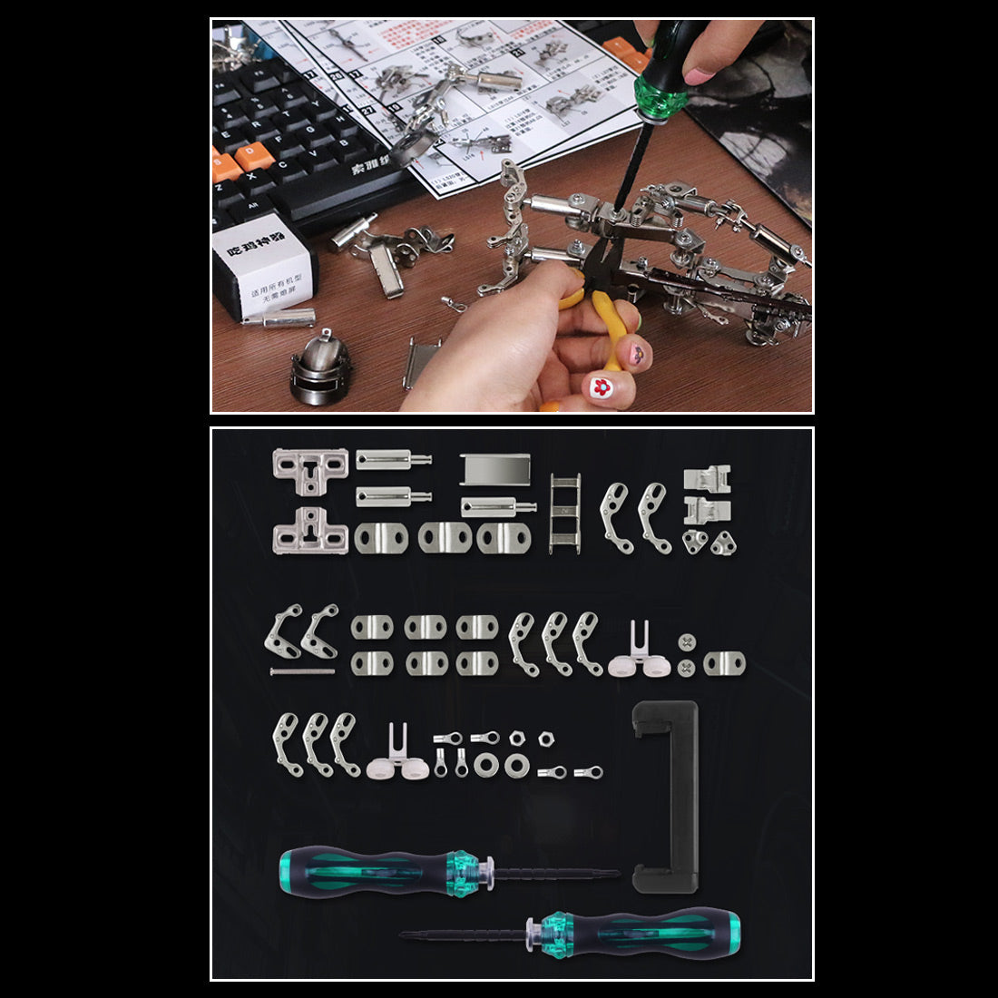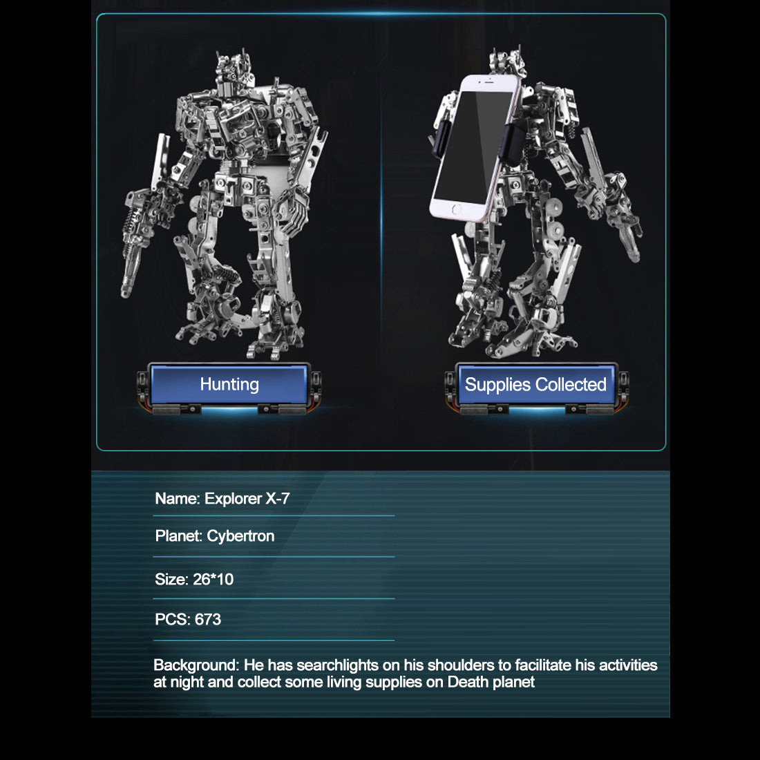 673PCS+ Explorer Mecha X-7 3D Metal Assembly DIY Kit Phone Holder 2-in-1