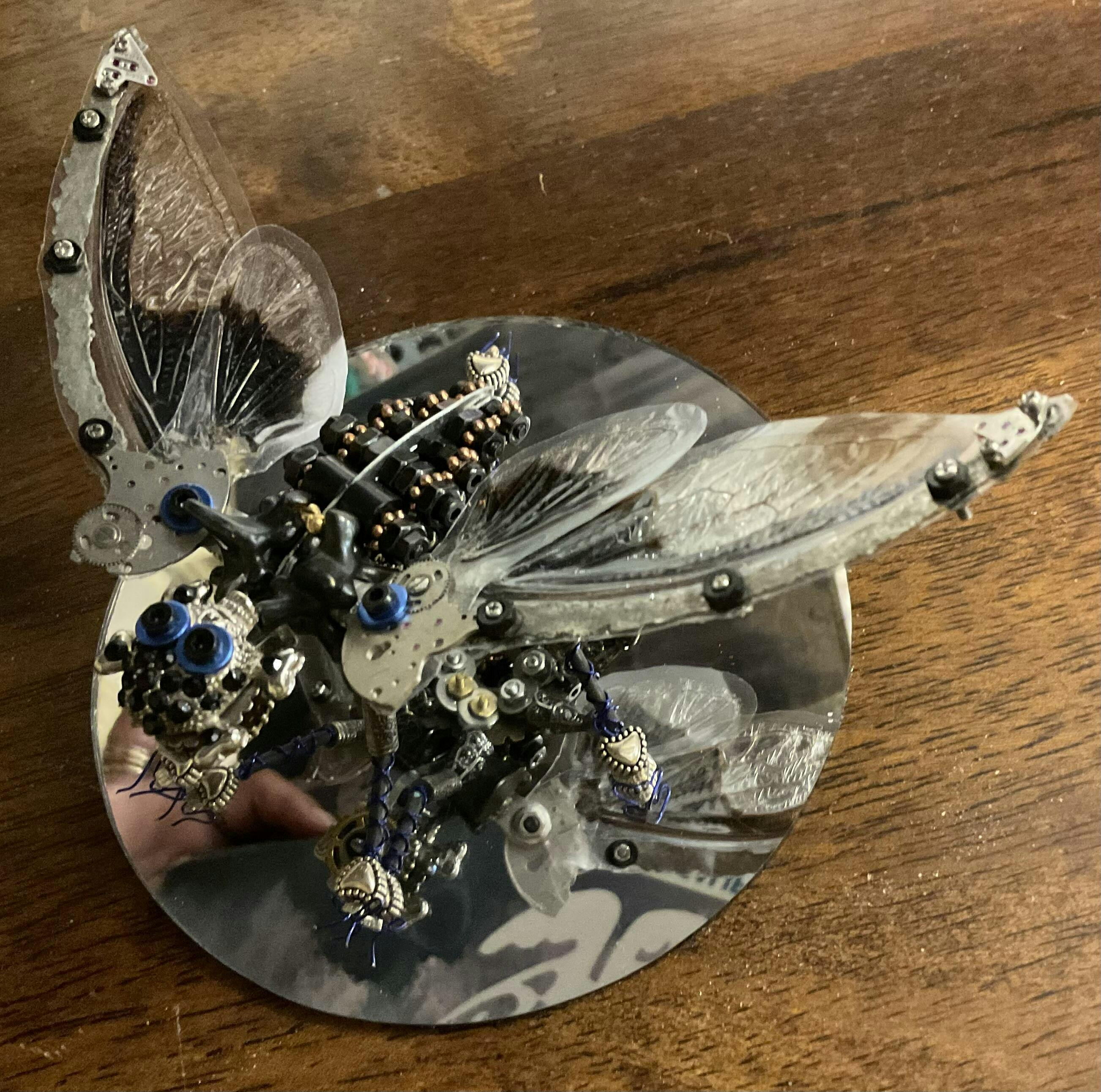 That being said, the overall design is clever, although few body pieces where I was sure about directions could not be made to not move so in the end I devised a kind of bracket to keep stuff together. Either way I enjoyed myself putting it together. The last photo is one of my own design of a mechanical cicada with laminated real cicada wings.
