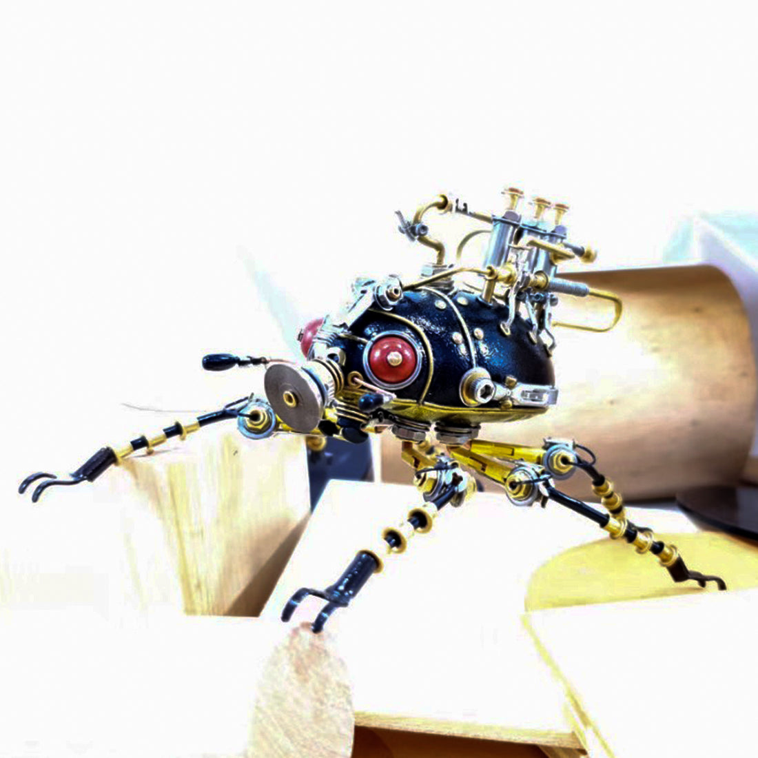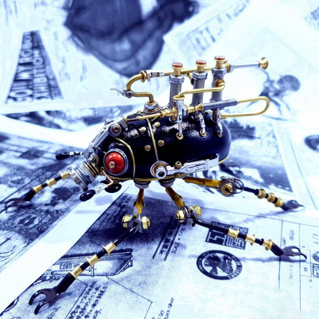 Steampunk Metal Red-Eye Small Scarab Bug Insect Sculptures Model Kits