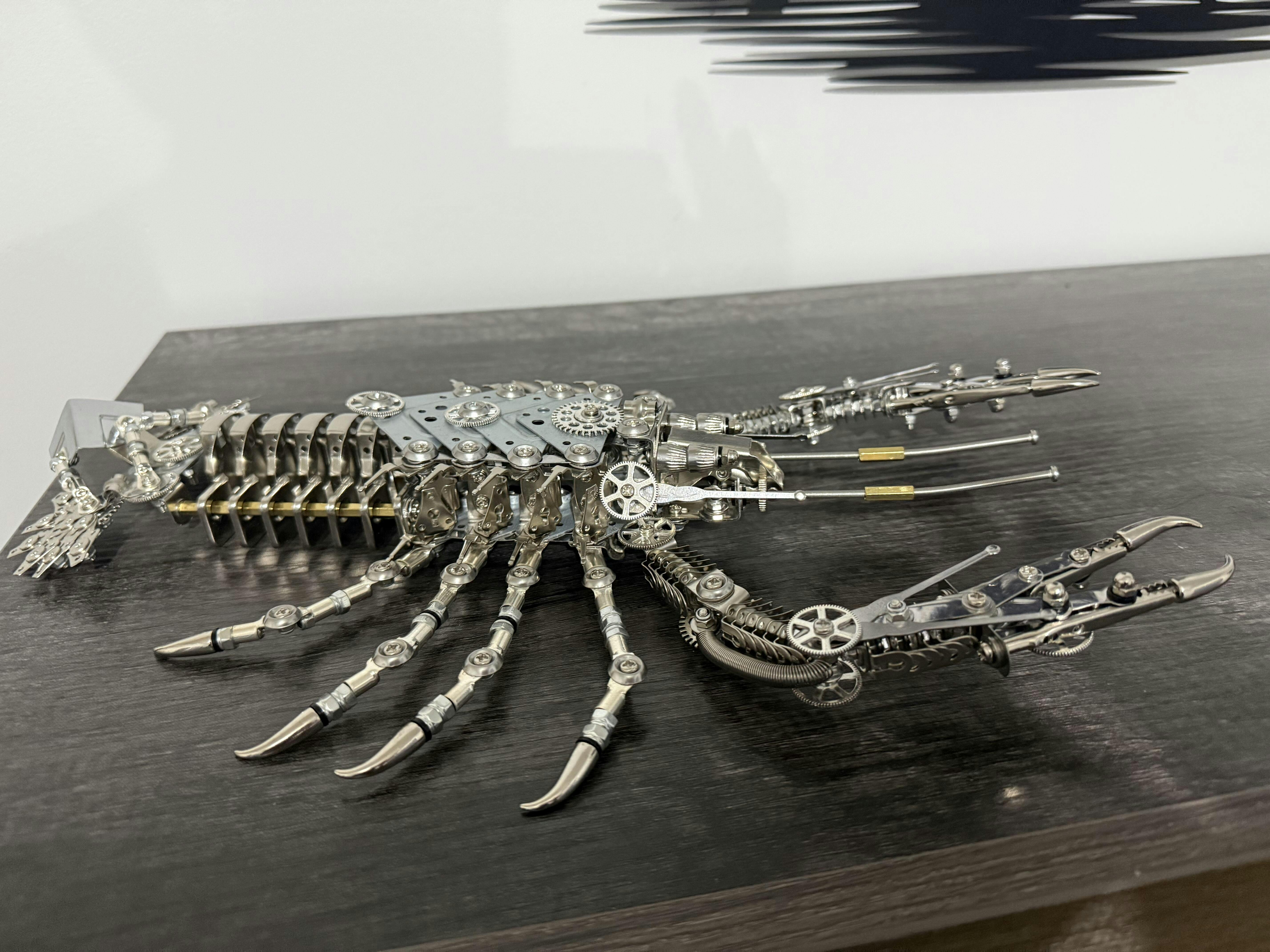.Industrial-Style Mechanical Aesthetics: With intricately interlocking gears and metal parts, this model captures the essence of steampunk and mechanical art, vividly recreating the form of a lobster with a rugged, lifelike presence.