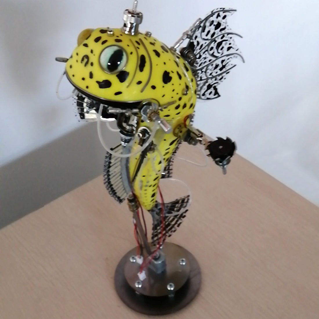 Steampunk Metal Yellow Fish Sculpture Model Kits 3D Handmade Assembled Art Crafts