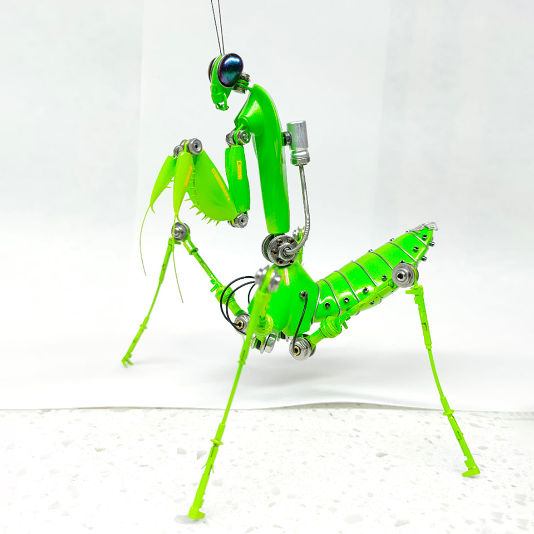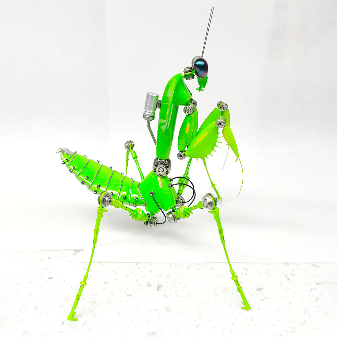 Green Mantis Steampunk Bug Assembled Model Kits Metal 3D Sculpture Crafts