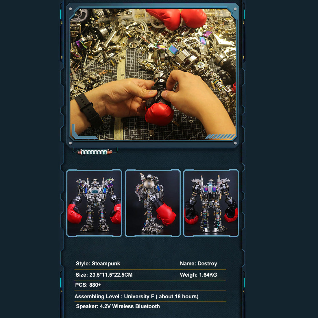Boxer Mech DIY Metal Assembly Building Kit 880Pcs+ Wireless Bluetooth Speaker- Destroyer