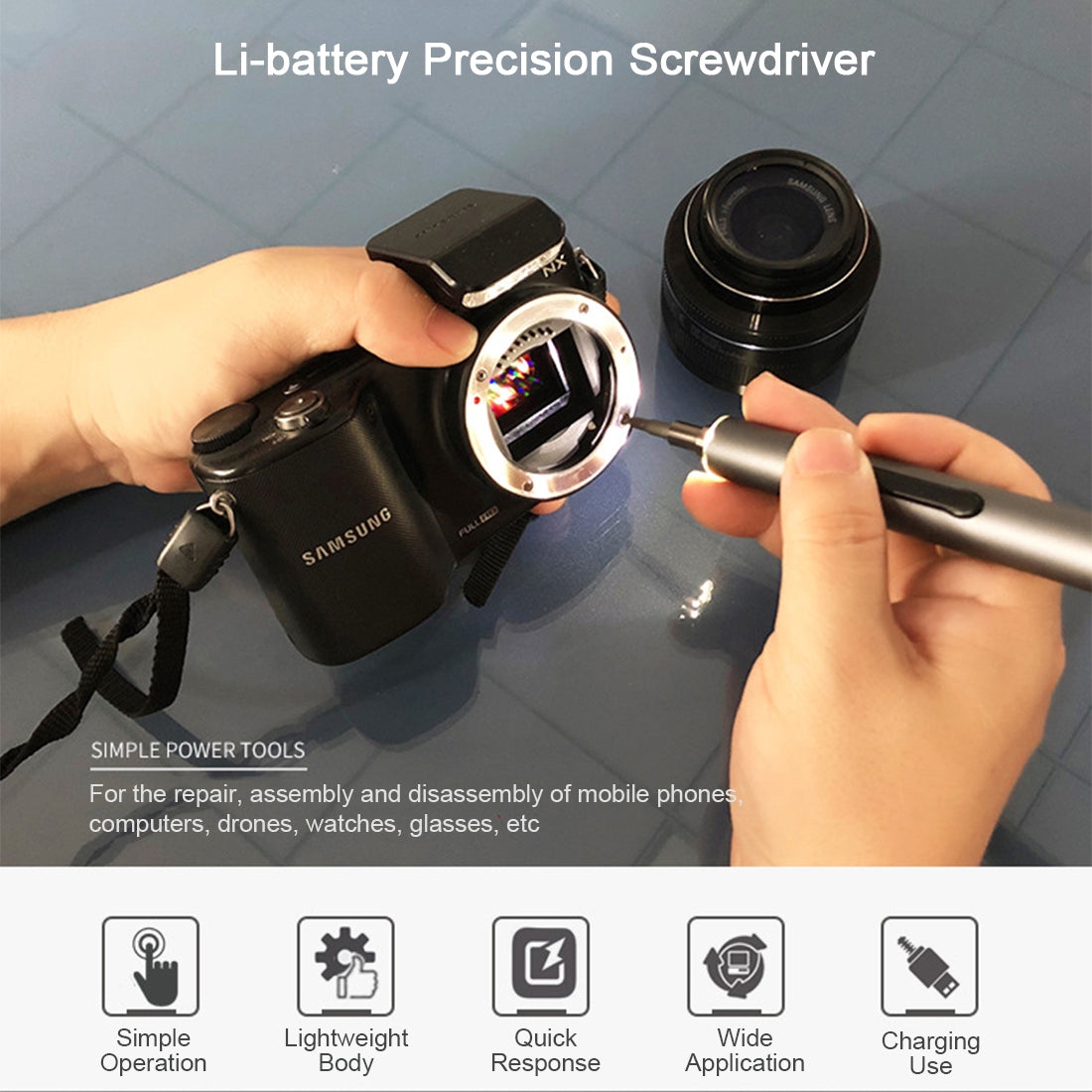 .The mini precise electric screwdriver set is convenient to use, intelligent and labor-saving, with aluminum alloy body and excellent surface treatment for slip resistance and comfortable hand feel.