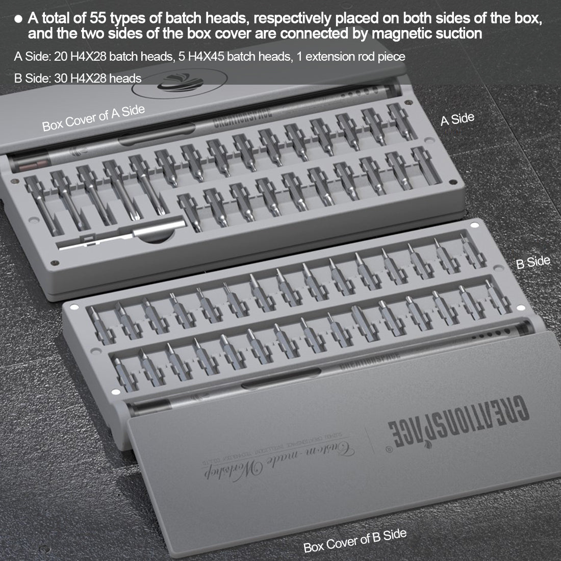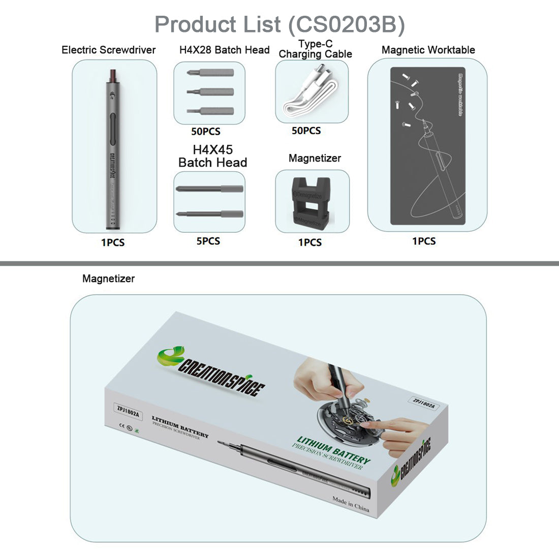 .Equipped with magnetizer and magnetic eraser for easy reducing and increasing of the magnetic force of head and multiple ways to increase the length for different working environments adaptation.
