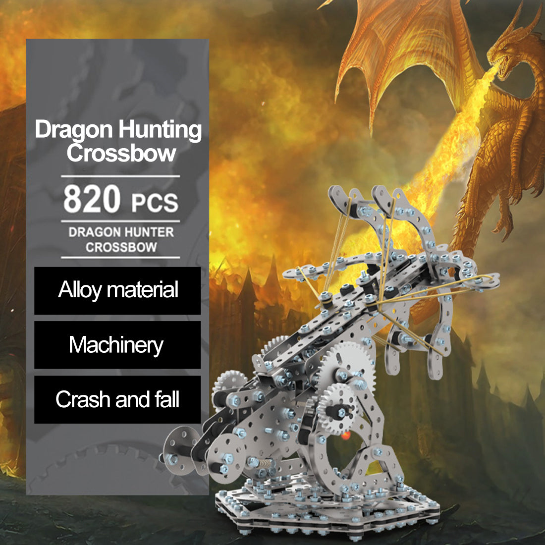 820PCS金属组装DIY玩具机械齿轮传动推出猎龙弩