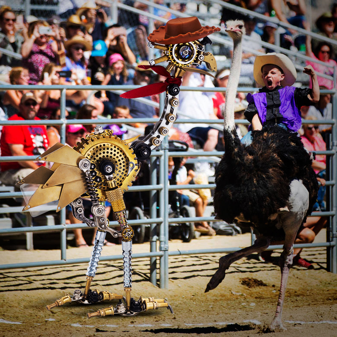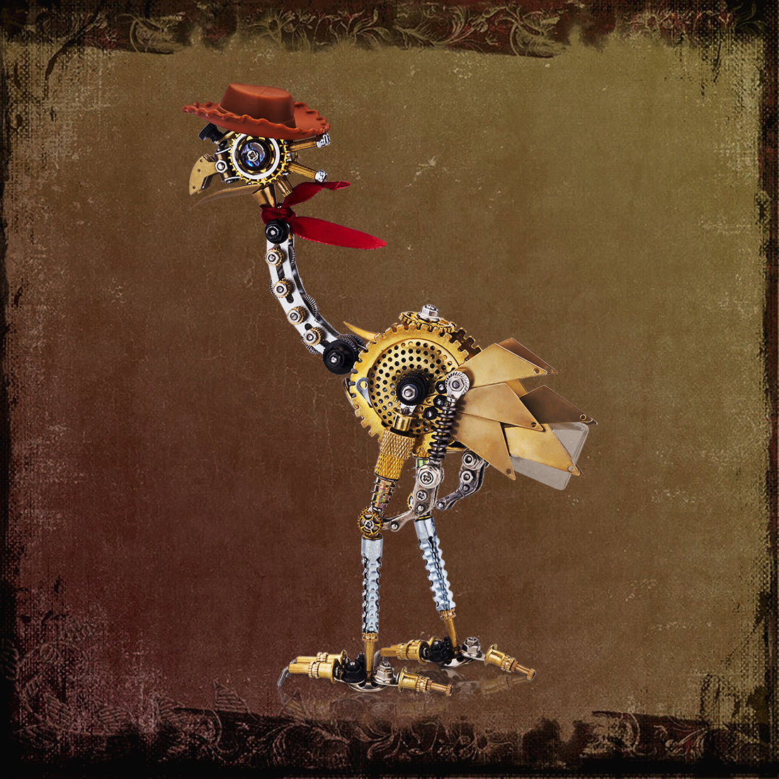 Classic Ostrich Western Cowboy 350PCS 3D Metal Model Kits Steampunk Animal