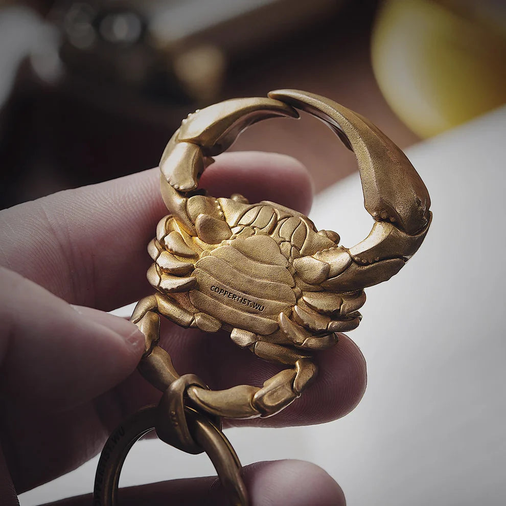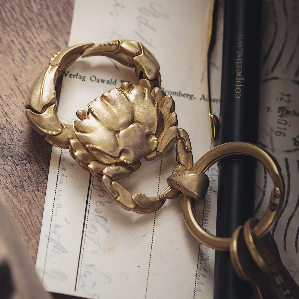 Crafted with attention to detail, this keychain is made of 925 sterling silver and brass. The crab's pincers feature a spring-press structure for easy use, and the right pincer has a bump for better closure. The edges are all rounded for a comfortable touch, and the crab foot has a convenient hanging buckle for attaching a keyring. This handmade keychain is a perfect blend of exquisite detail and top-notch craftsmanship, making it an elegant and stylish way to keep your keys organized.