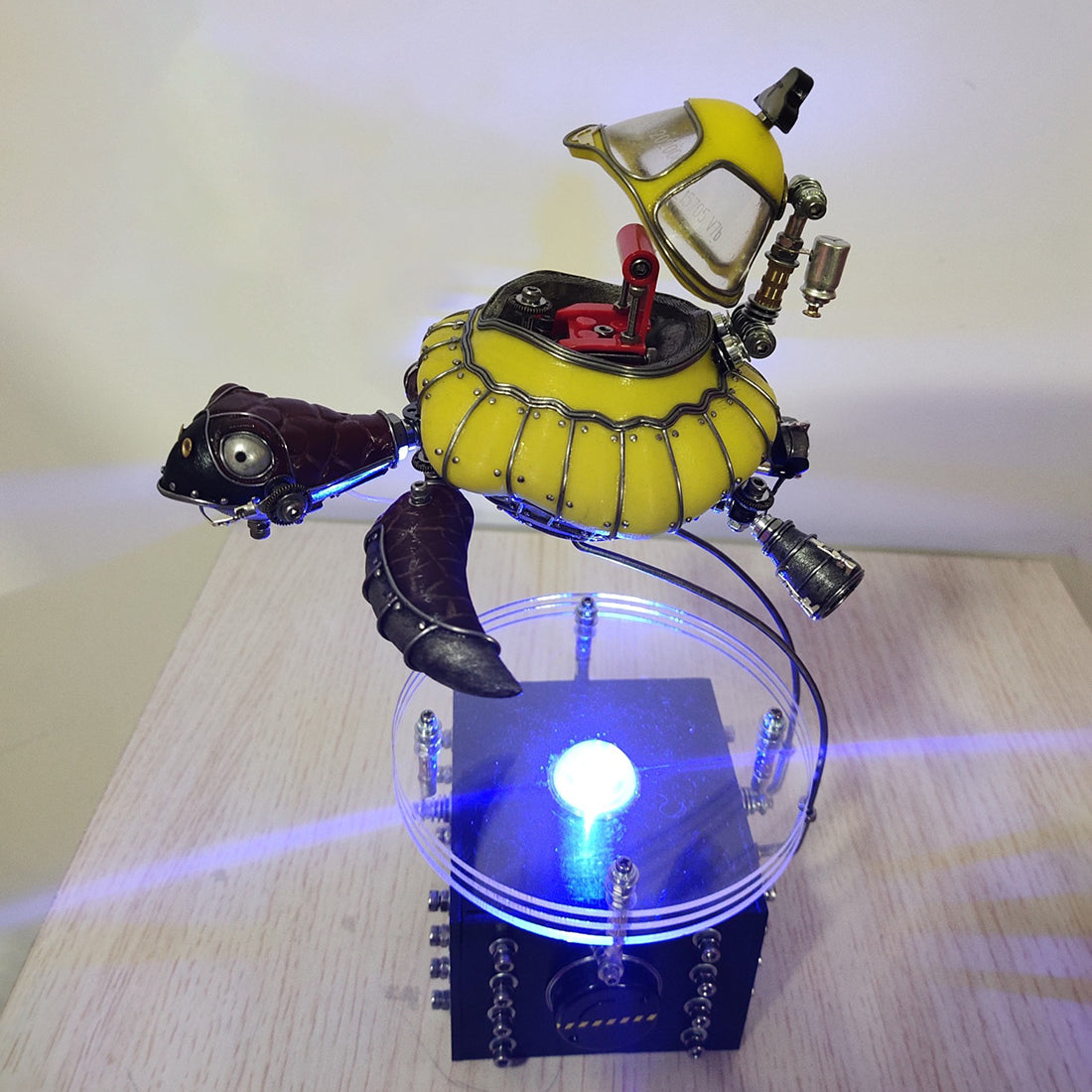 DIY Mechanical Metal Turtle Taxi Steampunk Sculpture Animal Assembled Model Kits with Light