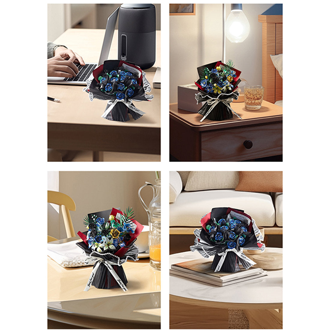 .Unique Design: The DIY Metal Blue Bouquet is crafted from premium quality metal, polished to a gleaming finish that reflects light beautifully. Its luxurious appearance adds a touch of opulence to any room, making it a perfect centerpiece or decorative accent.