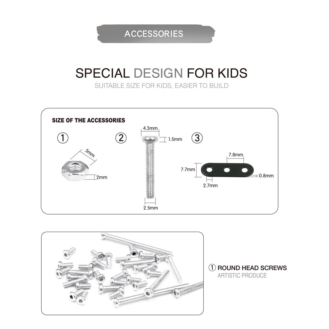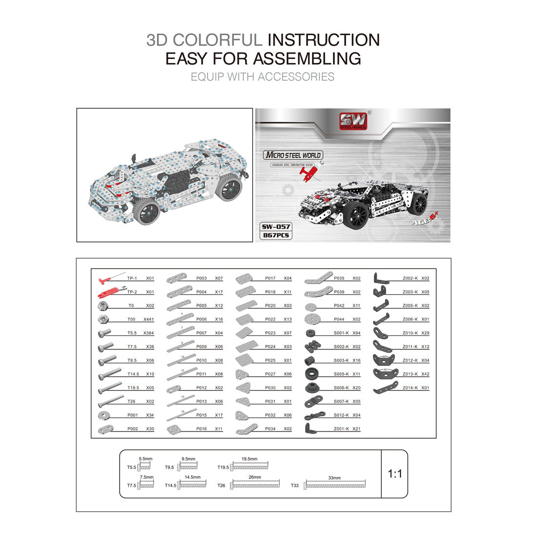 • The kit has a total of 867pcs, with color three-dimensional graphic instructions and assembly tools, easy to understand and easy to assemble, even children can follow the steps to complete the assembly, to help children understand the assembly tools, learn life skills, metal assembly model is compared with traditional building blocks and puzzles, more interesting and challenging.
