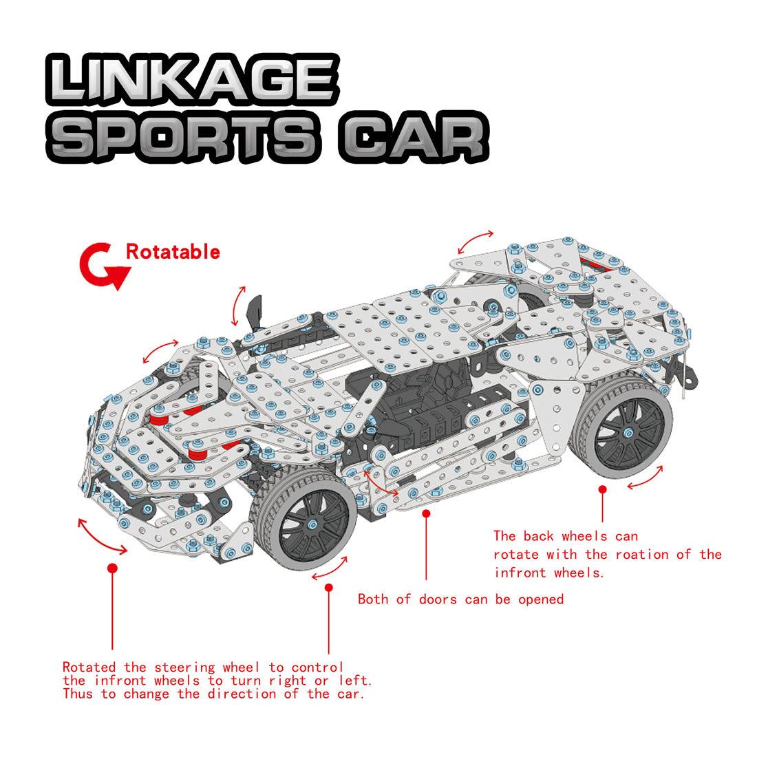 • Cool Sports Car Shape: Fully manual and difficult assembly, experience the fun of creating technology. The 3D metal structure design is exquisite and ingenious, the simulation is high, and the metal texture is full. The wheels are linked with the steering wheel, can be steered synchronously, multiple modes of operation, and multiple occasions for playing.