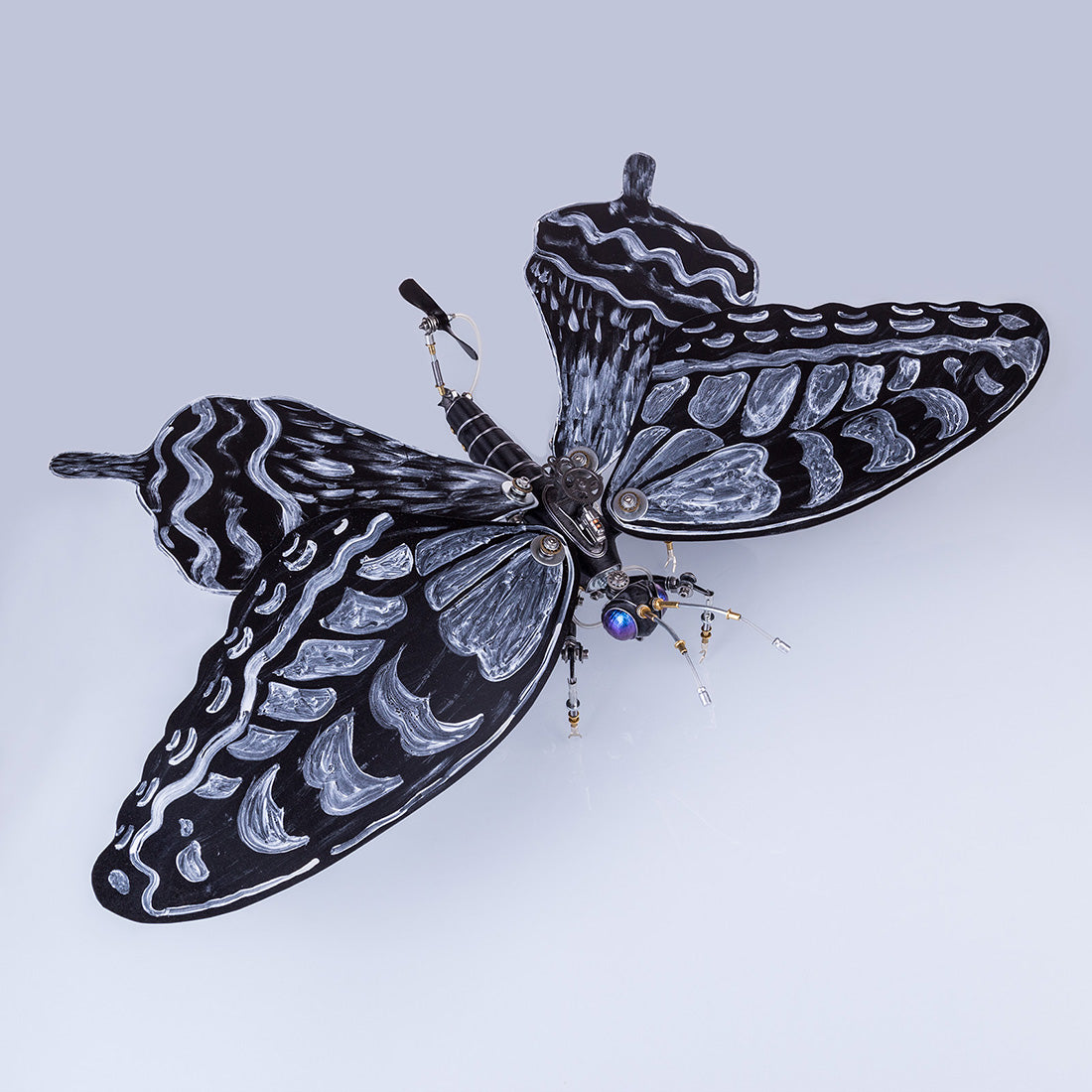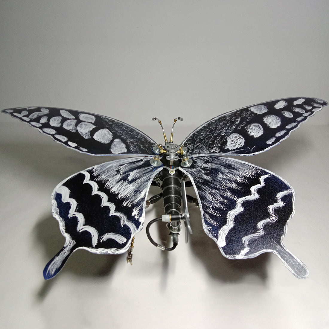 Mechanical Metal Black and White Butterfly Steampunk Insect Sculpture Art