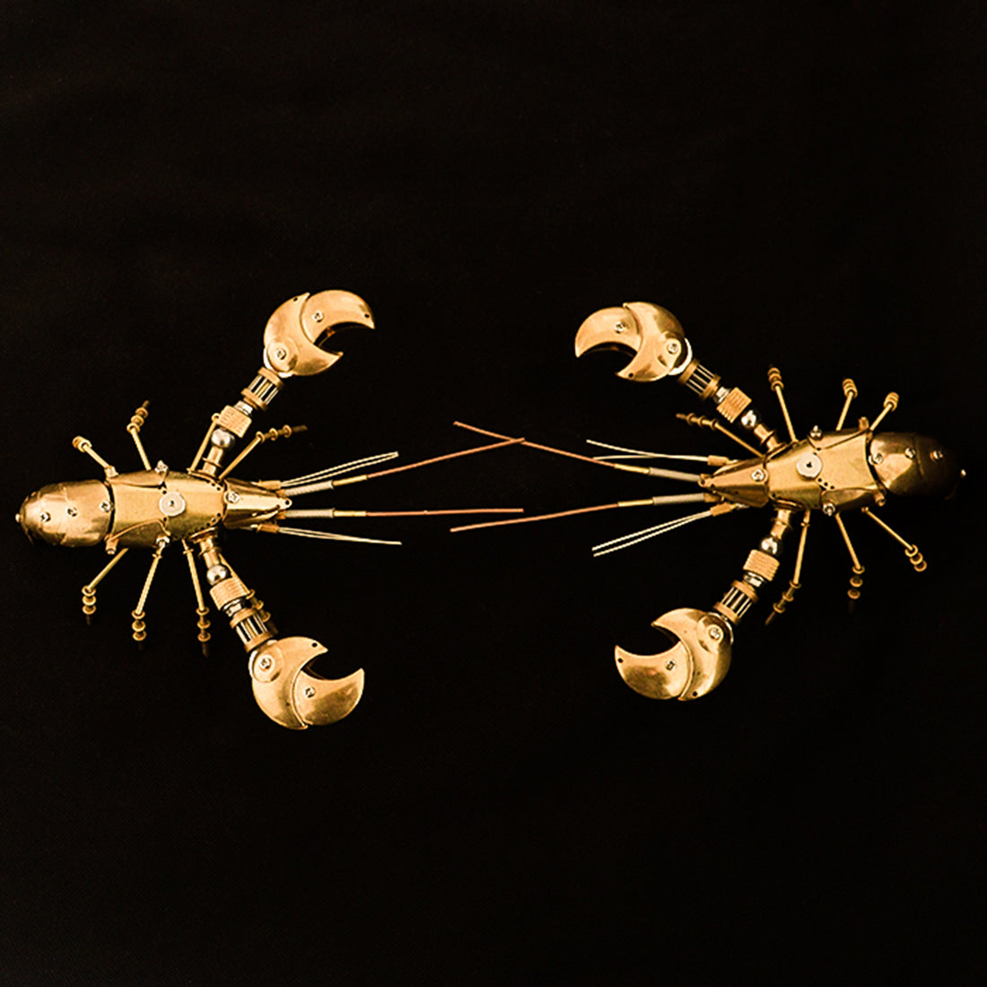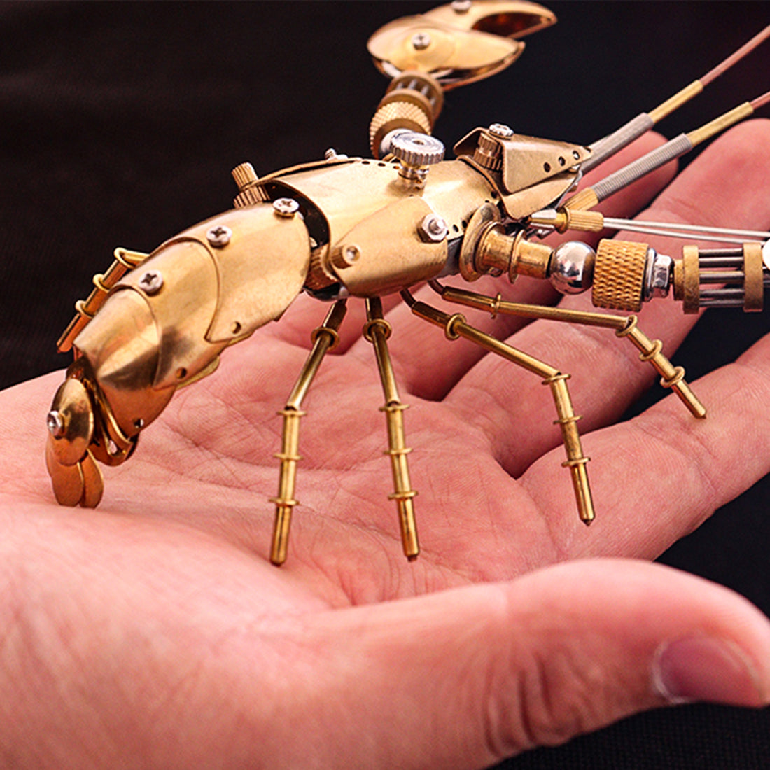 Metal Brass Lobster Animal Model Handmade Assembled Crafts for Collection