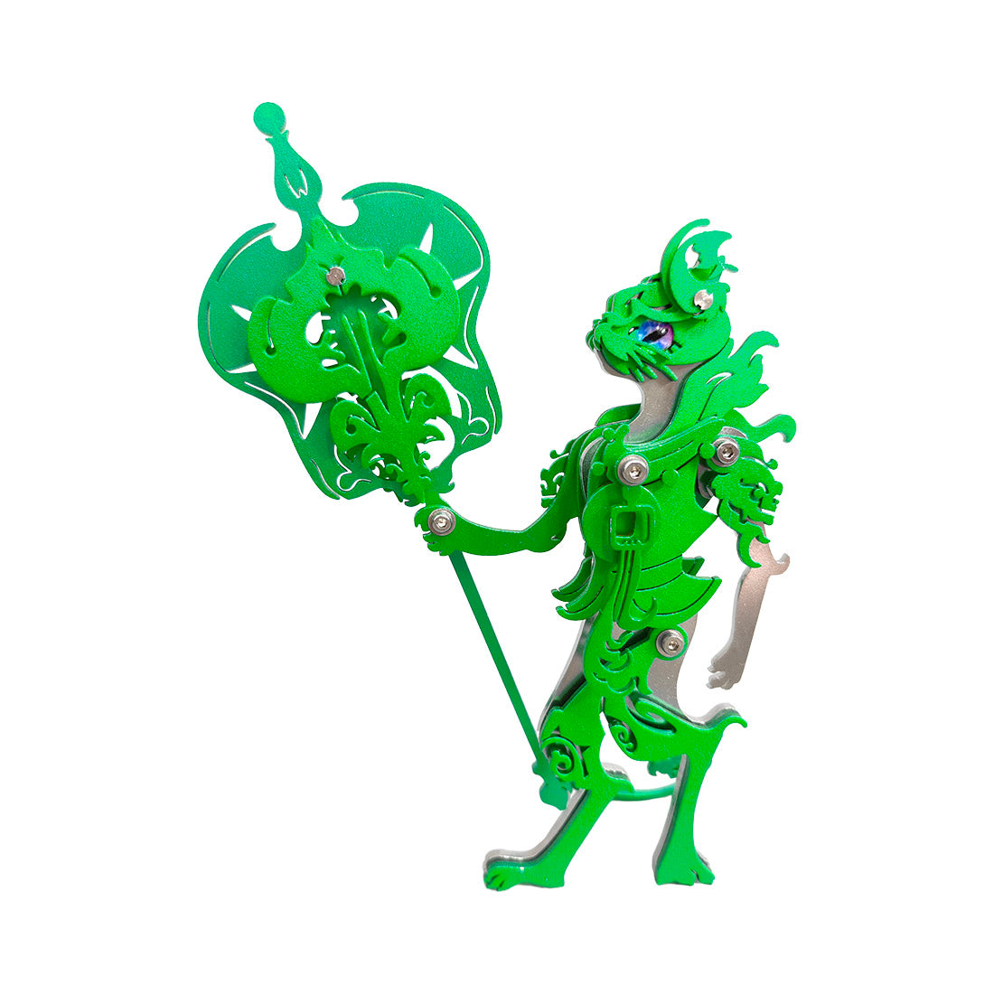 Creative Design: Based on a cat and designed as a soldier cat holding an iron fan with his head held high in the air. This soldier cat model is featuring great assembling feel and medium assembly difficulty.