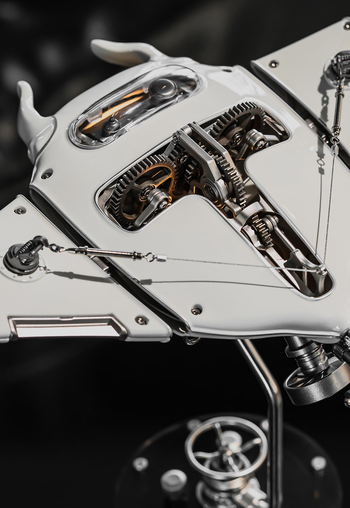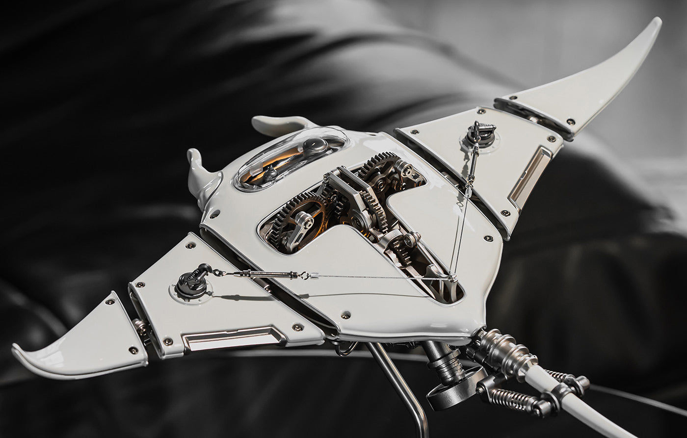 .Bionic Design: A white manta ray, due to its unique coloration, is often interpreted as a symbol of purity, transformation, and a connection to the spiritual realm within the context of ocean symbolism, especially in cultures where manta rays are revered as powerful creatures; its white color signifying a clean slate or a new beginning. Explore the future of mechanical artistry with this stunning Devil Fish model, featuring lifelike details and premium quality metal construction.