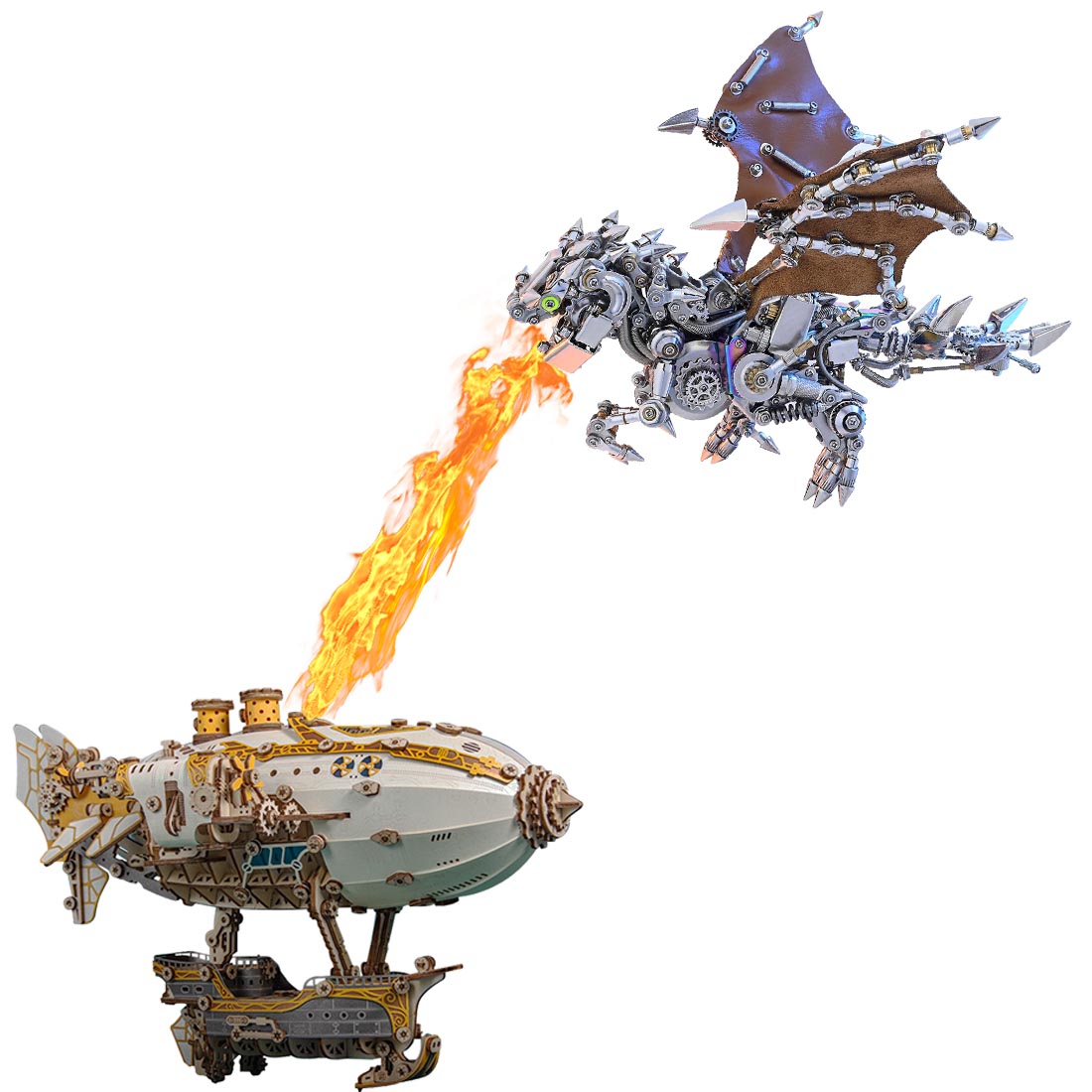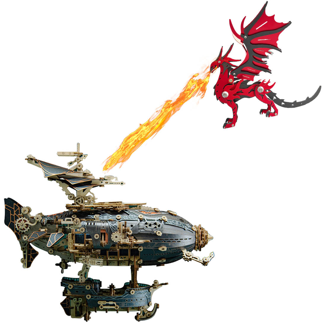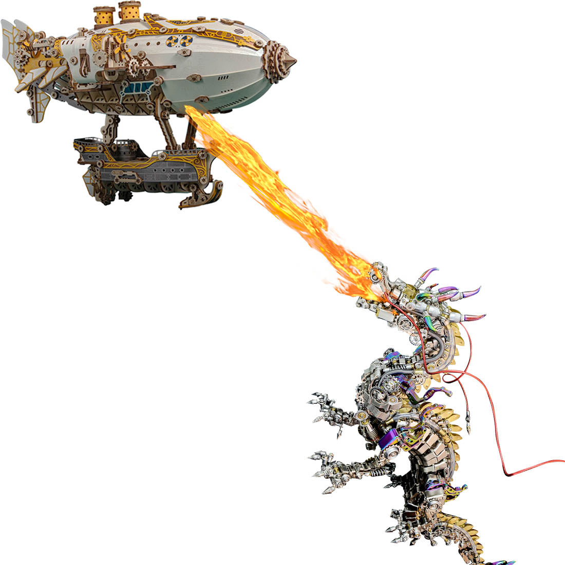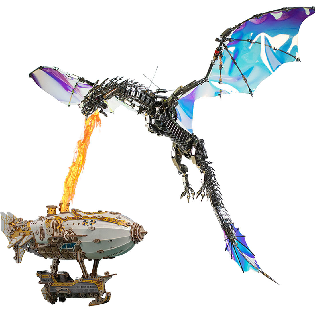Steampunk Airship Blimp with Dragon Model Building Toys Sci-fi Spaceship Dragon DIY Kits for Adult