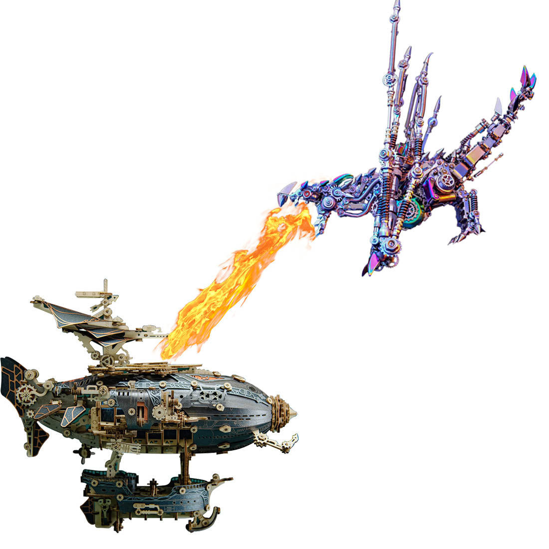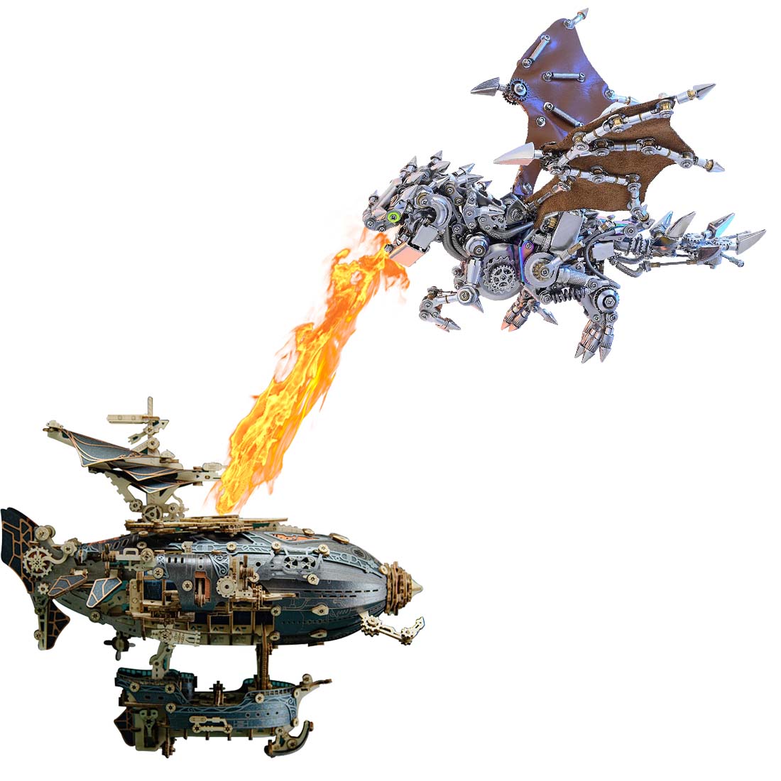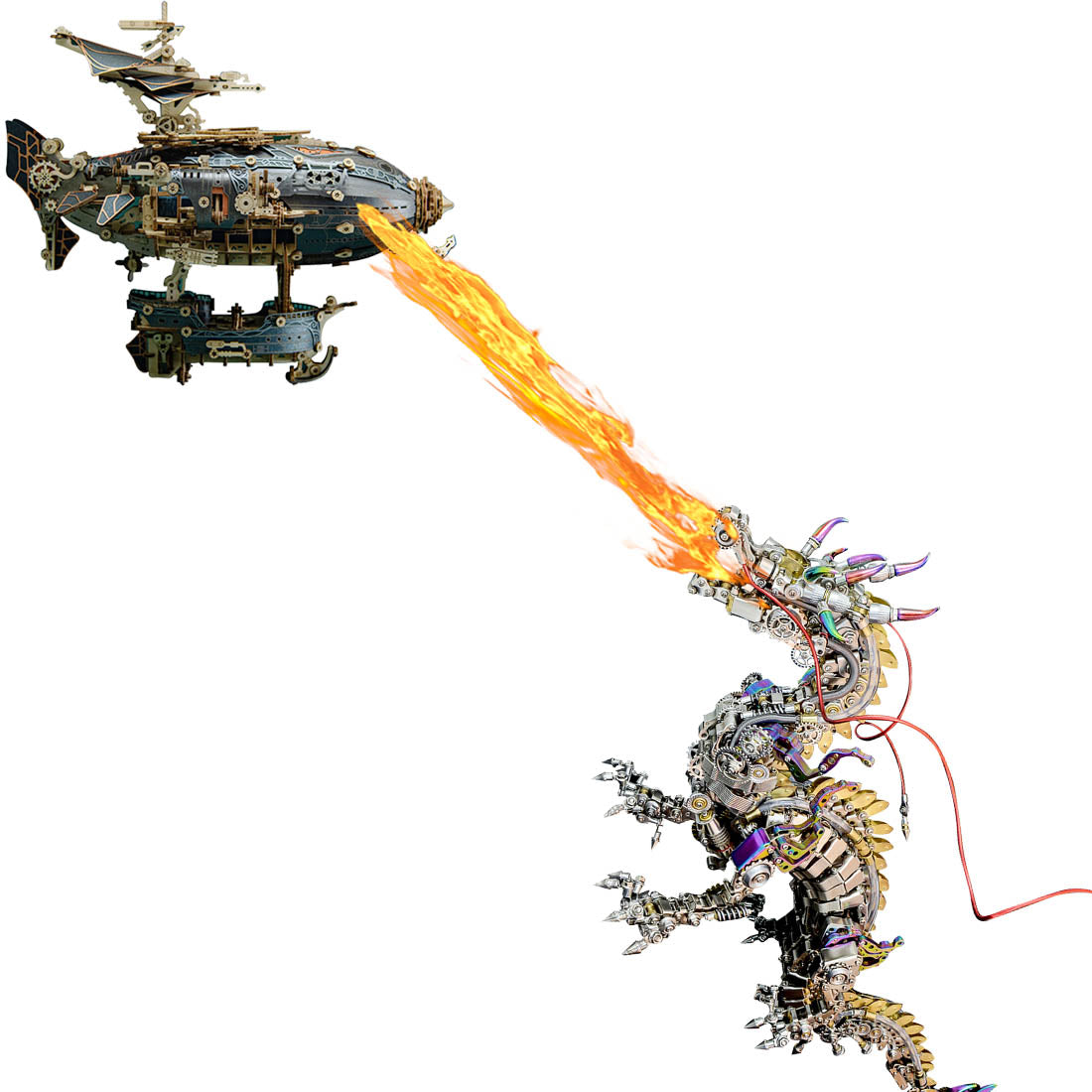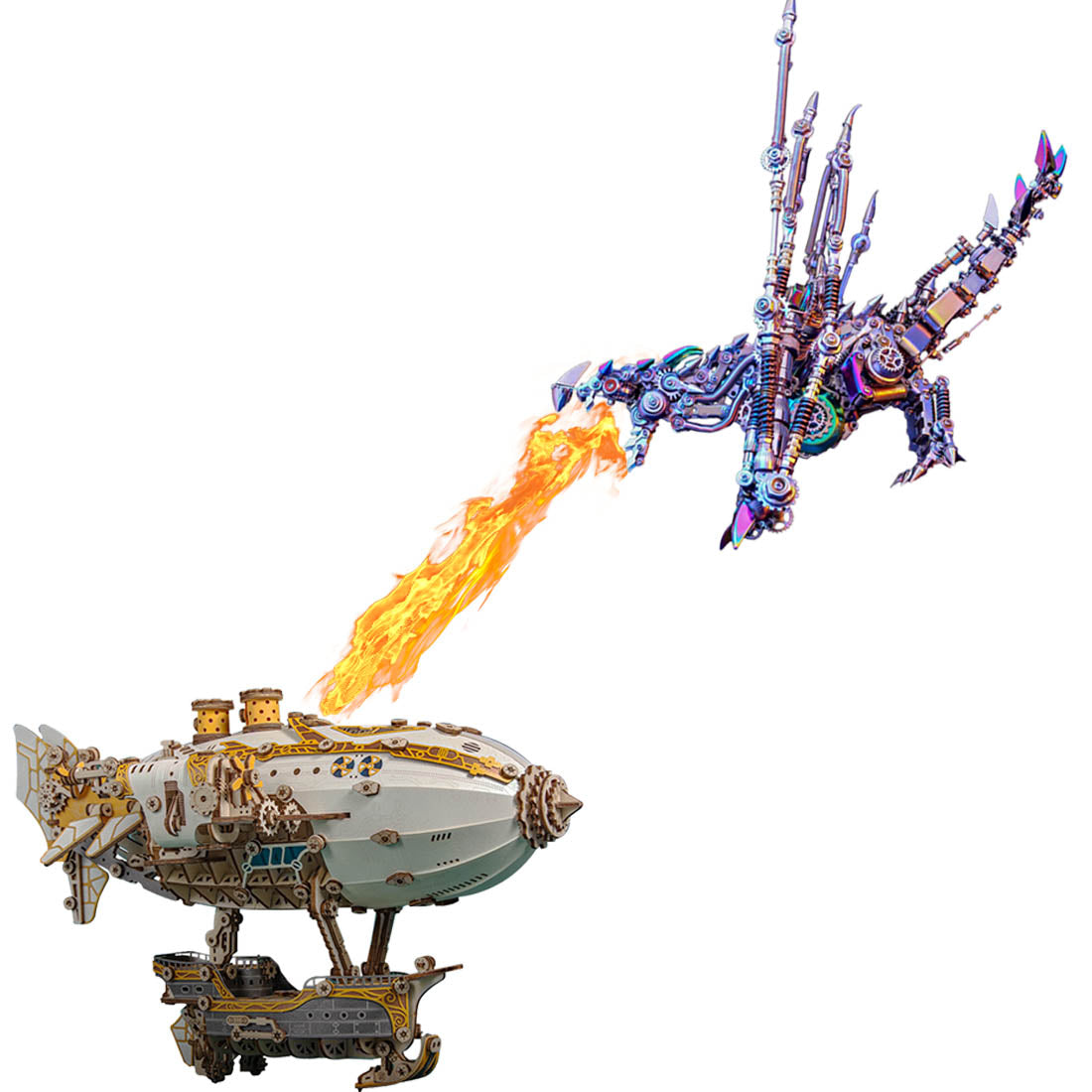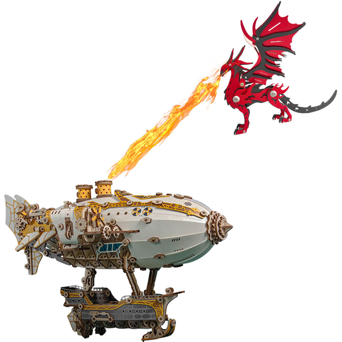 Steampunk Airship Blimp with Dragon Model Building Toys Sci-fi Spaceship Dragon DIY Kits for Adult